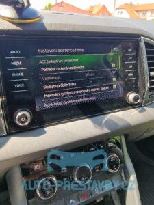 Karoq 2018 : instalace adaptivniho tempomatu do 210 km , aktivace pAcc prediktivniho tempomatu podle znacek , výměna celniho skla s úchytem pro kameru , dodělání kamery asistentů ( automatické dálková svetla , lane assist (vedení jízdního pruhu) , cteni znacek ), prodloužení intervalu na 60 sekund pro vedeni jizdniho pruhu, příprava na další dodělání digitálních budíku
